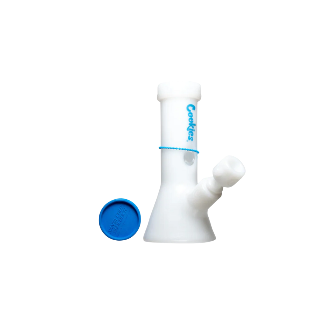 The Cookies Mighty Mini Beaker Bong brings big performance to a smaller setup. Standing at 8 inches, this compact beaker is crafted from thick 5mm borosilicate glass for long-lasting durability and a clean, smooth experience. Its beaker-style base provides a stable design and ample room for filtration, while the spiral grated downstem diffuser creates a whirlpool effect that cools and refines each hit. The signature Cookies “Bite” ice catcher adds a final touch, letting you enjoy crisp, chilled rips in a compact, easy-to-handle piece.