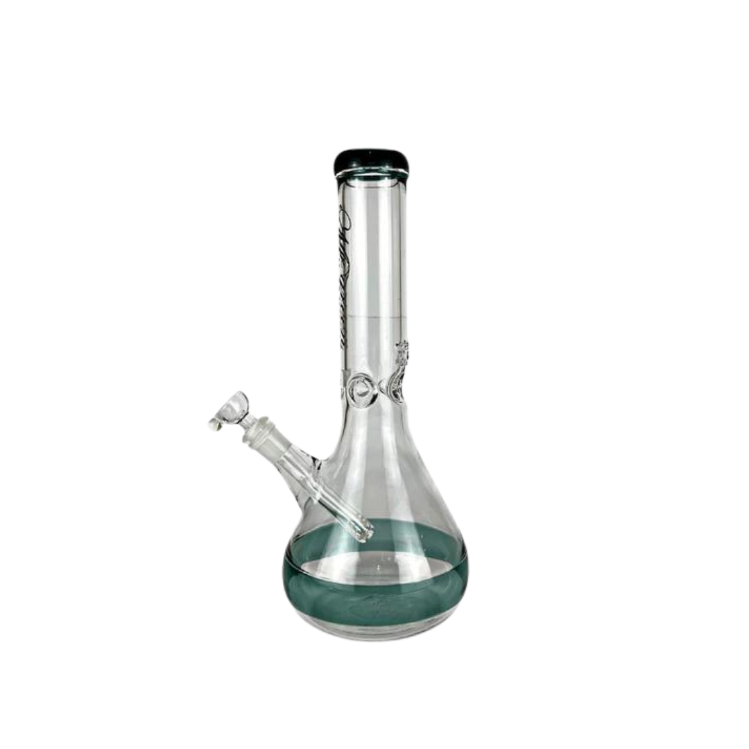 The MR GREEN 1070 is a 12-inch glass beaker bong designed with a wide base and narrow neck, providing stability and smooth functionality. Its beaker-style design allows for a larger water chamber, which enhances smoke filtration and cooling for a more comfortable inhalation. Built with durability in mind, this bong combines a classic look with reliable performance.